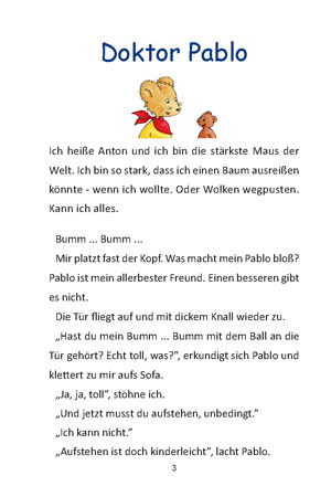 Der zweite Band mit vier Vorlesegeschichten oder auch erste Lesegeschichten über die kleinen Abenteuer von Anton, der Maus und Pablo, ihrem Kuschelbärchen.