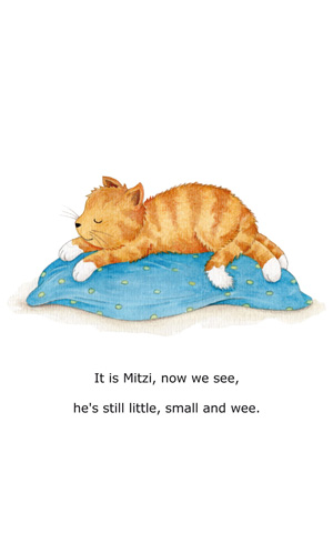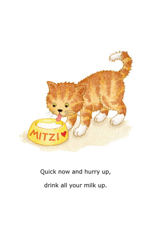 A joyous, funny bedtime story for young children. Accompanied by two-line rhymes, the delightful illustrations show the adventures of a cute little cat. From his waking up in the morning, his games with his friends in the garden, until he falls asleep at night.