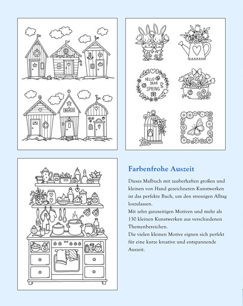 Gönnen Sie sich zwischendurch eine kleine Pause, auch wenn nur wenig Zeit zum Ausmalen bleibt. Die vielen kleinen Motive eignen sich perfekt für eine kurze kreative und entspannende Auszeit.