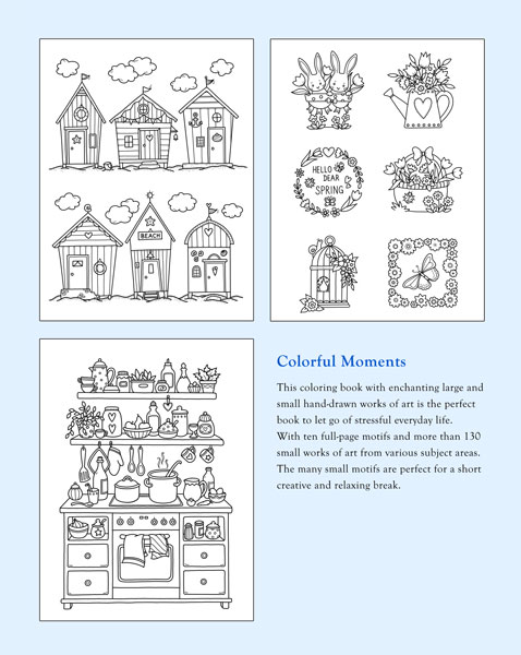 Treat yourself to a little break in between, even if you only have a little time to color. The many small motifs are perfect for a short creative and relaxing break.