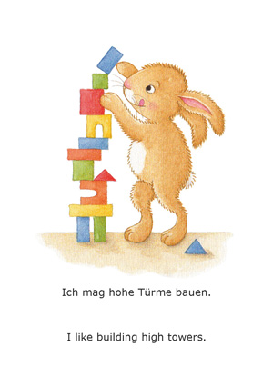 Aber es weiß schon ganz genau, was ihm so richtig Spaß macht. Ganz besonders mag es: einen hohen Turm aus Bauklötzchen bauen oder im Regen spazieren gehen. Aber am allermeisten mag es Kuscheln mit Mama und Papa.