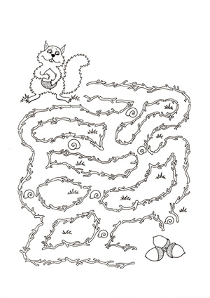 Das kleine Eichhörnchen sucht den Weg zu den Eicheln. Es darf nur dort laufen, wo keine Schneckenhäuser den Weg versperren. |