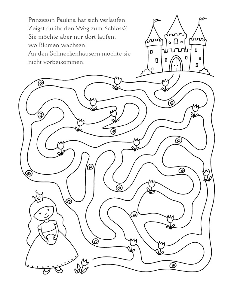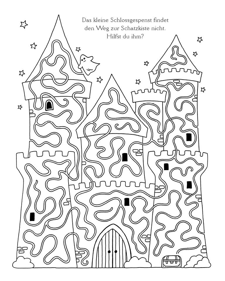 Das kleine Schlossgespenst sucht die Schatztruhe und Bär Bruno ist traurig, denn er kann seinen Honigtopf nicht finden. Der kleine Roboter will seinen Freund besuchen und Prinzessin Paulina hat sich verlaufen. Zeigst du ihr den Weg zum Schloss?