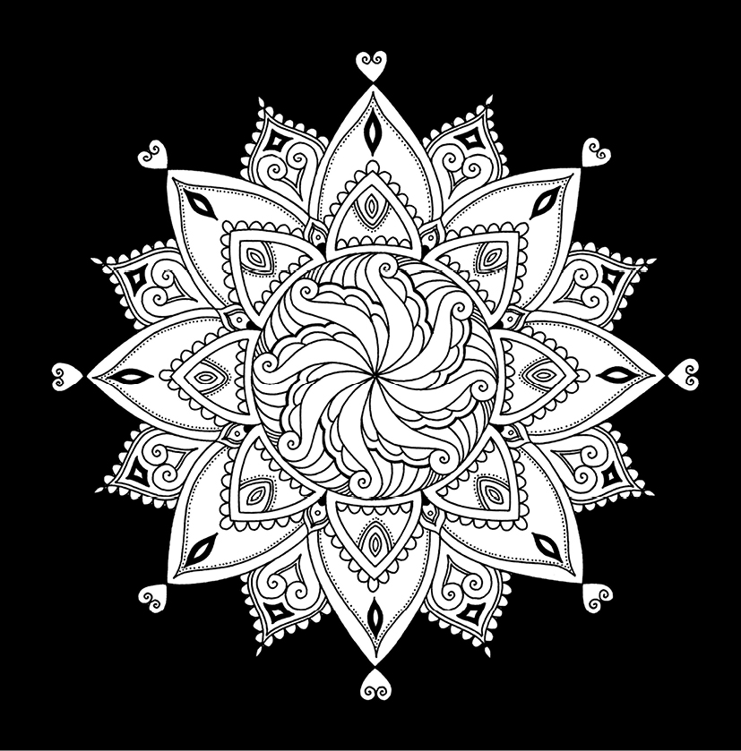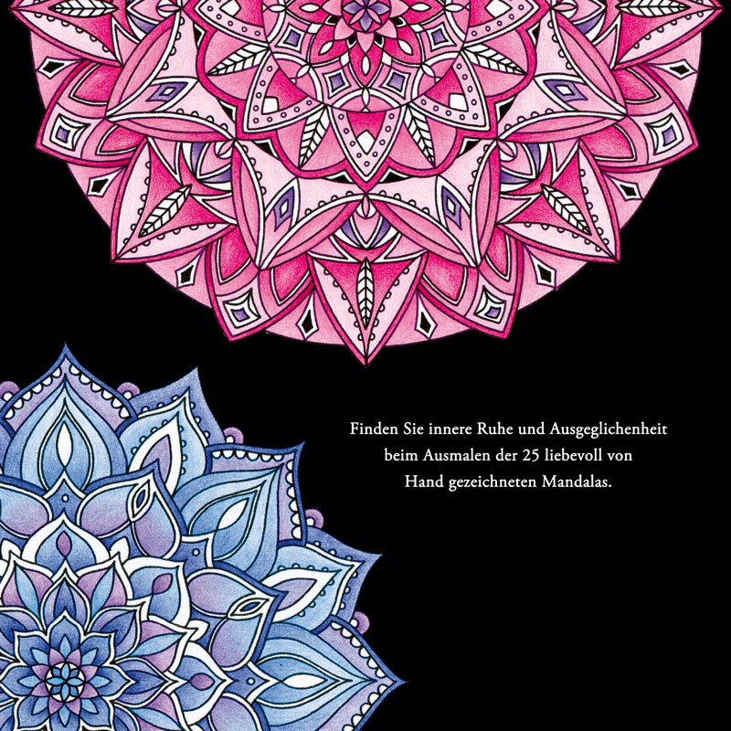 Finden Sie innere Ruhe und Ausgeglichenheit beim Ausmalen der 25 liebevoll von Hand gezeichneten Mandalas.