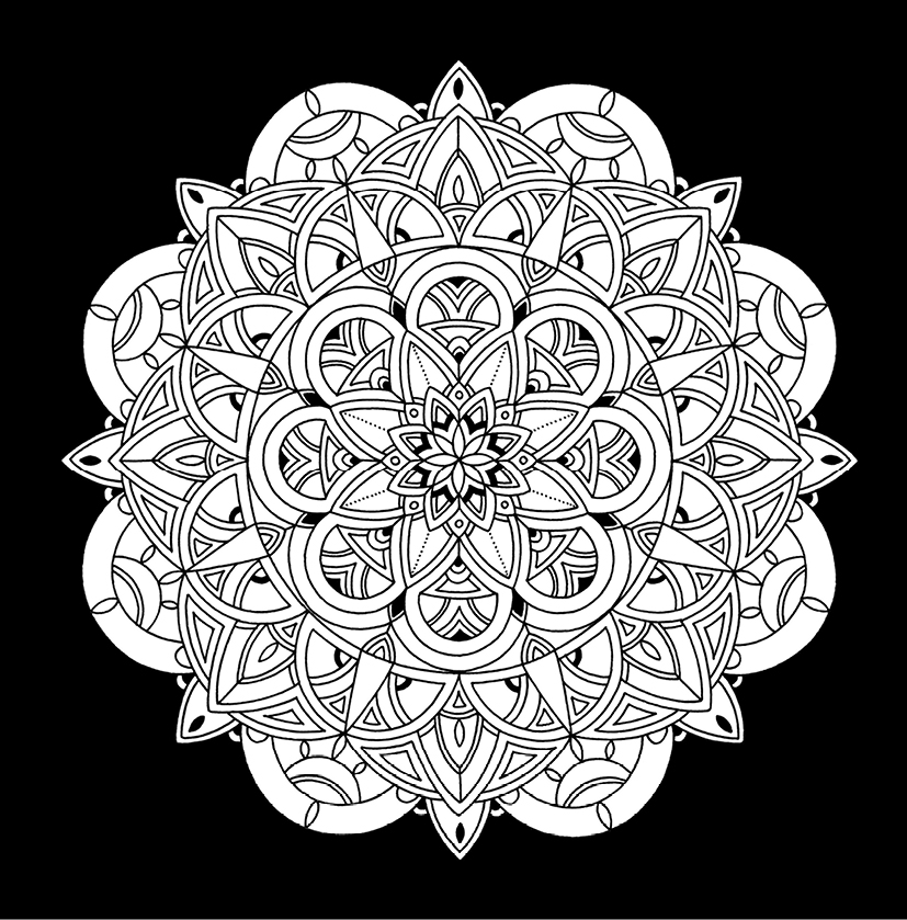 Ausmalen und Entspannen, ein Malbuch für Erwachsene mit schwarzem Hintergrund (Stressabbau)
