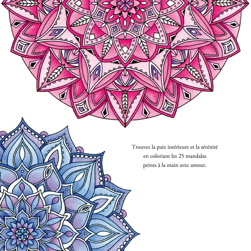 Trouvez la paix intérieure et la sérénité en coloriant les 25 mandalas peints à la main avec amour.