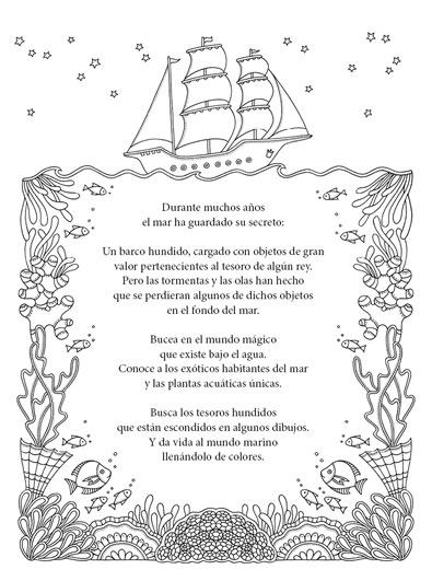 Busca los tesoros hundidos que están escondidos en algunos dibujos. Y da vida al mundo marino llenándolo de colores.