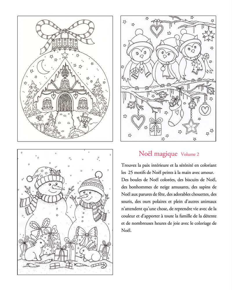 Des boules de Noël colorées, des biscuits de Noël, des bonhommes de neige amusants, des sapins de Noël aux parures de fête, des adorables chouettes, des souris, des ours polaires et plein d’autres animaux n’attendent qu’une chose, de reprendre vie avec de la couleur et d’apporter à toute la famille de la détente et de nombreuses heures de joie avec le coloriage de Noël.