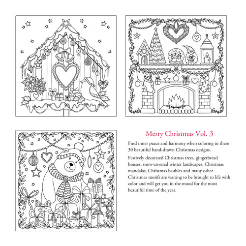 Festively decorated Christmas trees, gingerbread houses, snow-covered winter landscapes, Christmas mandalas, Christmas baubles and many other Christmas motifs are waiting to be brought to life with color and will get you in the mood for the most beautiful time of the year.