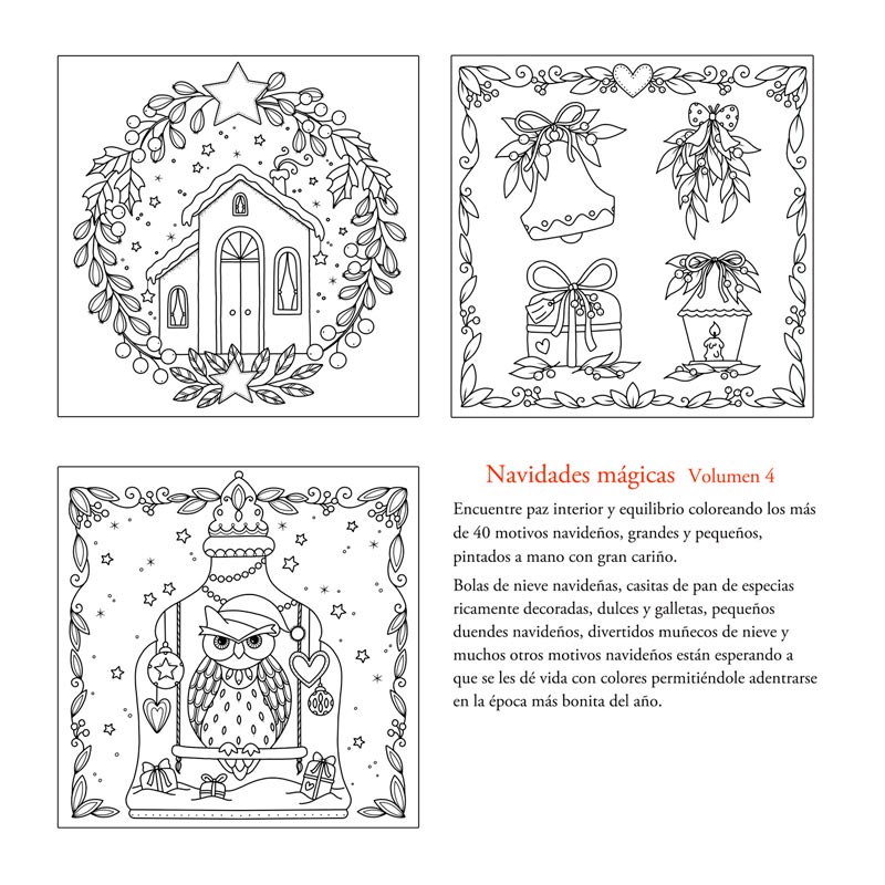 Encuentre paz interior y equilibrio coloreando los más de 40 motivos navideños, grandes y pequeños, pintados a mano con gran cariño.