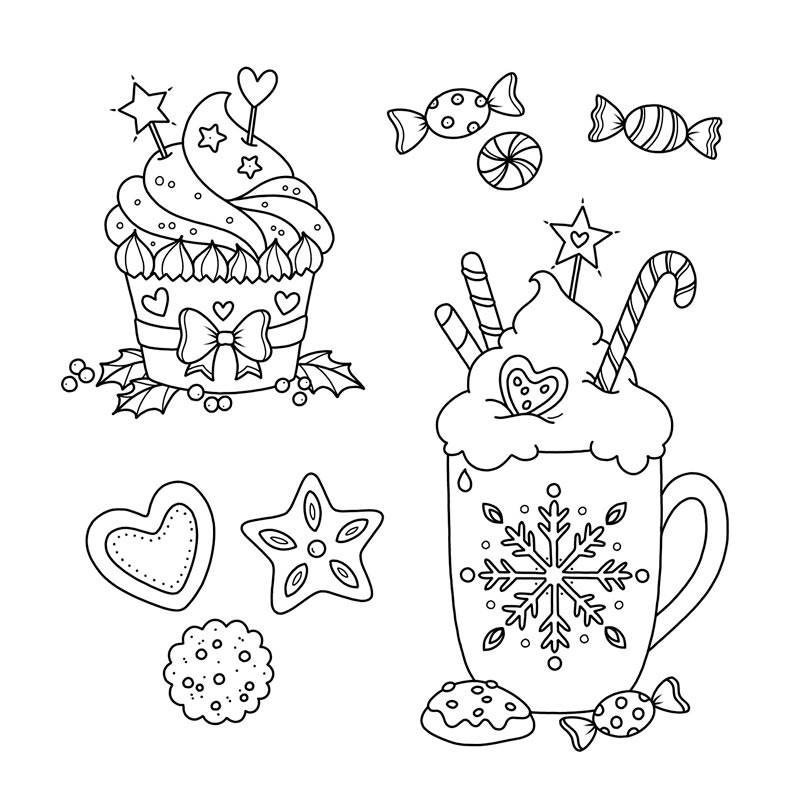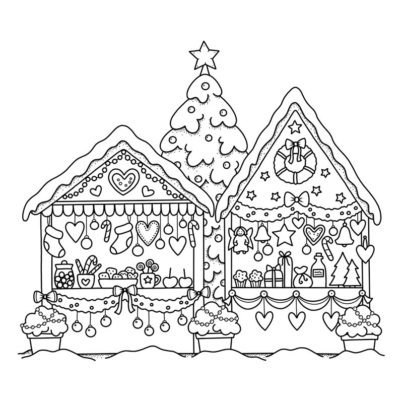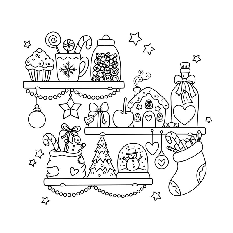 Des boules de neige de Noël, des maisons en pain d'épice richement décorées, des bonbons et des pâtisseries, des petits lutins de Noël, des bonshommes de neige amusants et d'autres motifs de Noël n'attendent qu'une chose, de reprendre vie avec de la couleur et de vous apporter de la detente et de nombreuses heures de joie avec le coloriage de Noël.