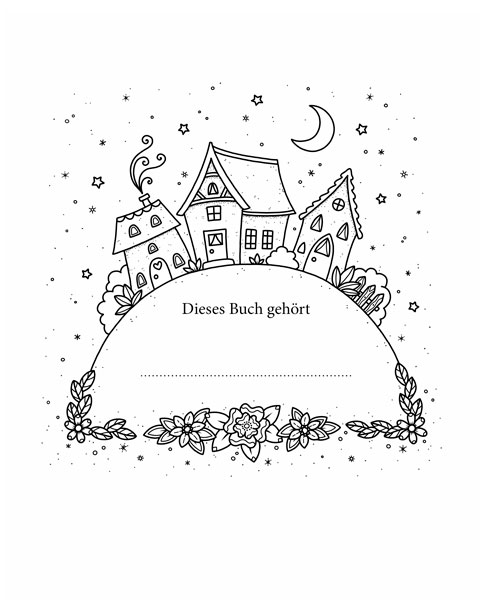 25 liebevoll von Hand gezeichnete Häuschen warten darauf, mit Farbe zum Leben erweckt zu werden.