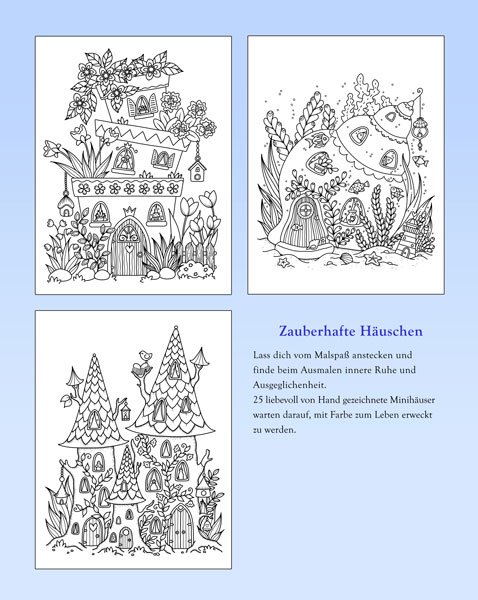 · 25 detaillierte bezaubernde Häuschenmotive.