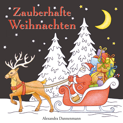 Zauberhafte WeihnachtenEin Weihnachtsmalbuch mit schwarzem Hintergrund für herrlich leuchtende Farben. |