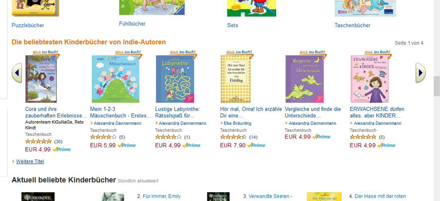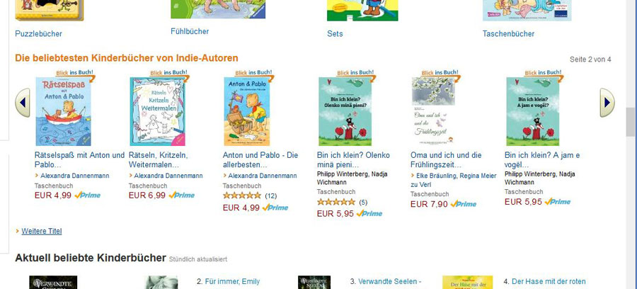 Sieben meiner Kinderbücher gehören zu den beliebtesten Kinderbüchern von Indie-Autoren bei Amazon. Ich freue mich riesig!!!